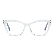 These chic glasses feature a bold, transparent frame with a subtle cat-eye shape, offering a sophisticated yet modern look.