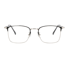 Metropolitan eyeglasses boast a sophisticated semi-rimless design with a sleek square frame, exuding a contemporary appeal. The frame is meticulously crafted from durable metal in a striking silver finish, complemented by a bold black browline that adds a touch of modern elegance.