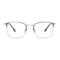Metropolitan eyeglasses boast a sophisticated semi-rimless design with a sleek square frame, exuding a contemporary appeal. The frame is meticulously crafted from durable metal in a striking silver finish, complemented by a bold black browline that adds a touch of modern elegance.