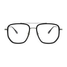Apollo eyeglasses feature a distinctive square-aviator frame with a sleek black and gold finish, perfect for a bold, modern look for both genders.