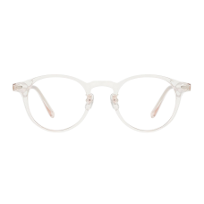 Clear frame with blue lenses is unexpectedly versatile! The transparent material doesn't yellow easily. Modern and chic.
