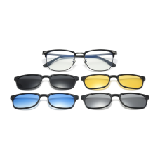 Transform your look and vision instantly with five magnetically attachable clip-on lenses: including high-performance polarized sunglasses perfect for reducing glare, specialized driving shades for enhanced road visibility, a vibrant yellow lens for improved contrast in low light, and a classic black UV protection lens for everyday sun safety.