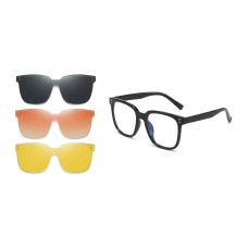It comes with three magnetic clip-on lenses—polarized for sun protection, yellow for enhanced night vision, and a stylish sunset gradient—offering four ways to wear and effortless style changes.