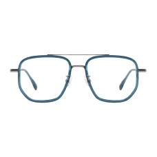 Apollo eyeglasses feature a distinctive square-aviator frame with a sleek black and gold finish, perfect for a bold, modern look for both genders.
