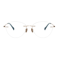 These eyeglasses exude a sense of sophisticated femininity and modern grace. The rimless construction offers an airy and subtle look, while the rose gold accents, delicate sparkle, and vibrant teal tips combine to create a truly distinctive accessory.