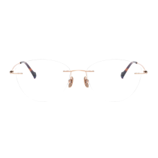 These eyeglasses exude a sense of sophisticated femininity and modern grace. The rimless construction offers an airy and subtle look, while the rose gold accents, delicate sparkle, and vibrant teal tips combine to create a truly distinctive accessory.