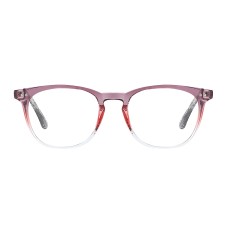 These fashionable glasses feature a captivating gradient frame that transitions from a soft purple at the top to a vibrant coral-red, then fades to a clear, translucent finish at the bottom.