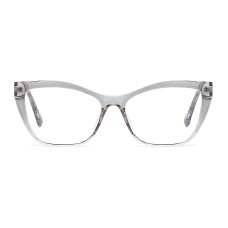 These stylish glasses feature a sleek, transparent grey frame with a subtle cat-eye silhouette, blending modern trends with a touch of vintage charm.