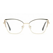 These sophisticated glasses feature a stylish gold-toned metal frame with a distinct cat-eye silhouette, offering a blend of modern chic and classic elegance.