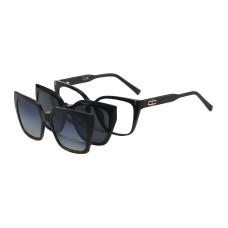 This base frame can be instantly transformed into stylish sunglasses with the addition of magnetic clip-on lenses. Two distinct sunglass options are included: one with deep grey tinted lenses for ultimate sun protection, and another with a chic gradient blue tint, offering versatile styling for any occasion.
