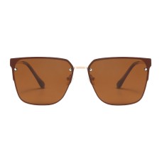 These sunglasses feature a sophisticated brown finish on both the frames and slender temples, exuding a contemporary edge. The dark tinted lenses offer excellent glare reduction, while the delicate silver-tone studs at the corners of the lenses add a subtle touch of elegance.