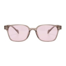 These glasses feature a subtle translucent light brown or taupe frame, perfectly complemented by delicate pink-tinted lenses that offer a unique and gentle aesthetic.