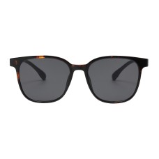 These sunglasses feature a rich and distinctive tortoiseshell pattern across both the frames and temples, offering a sophisticated aesthetic. The dark grey tinted lenses provide excellent sun protection and a sleek look, making them an ideal accessory for everyday wear or special occasions.